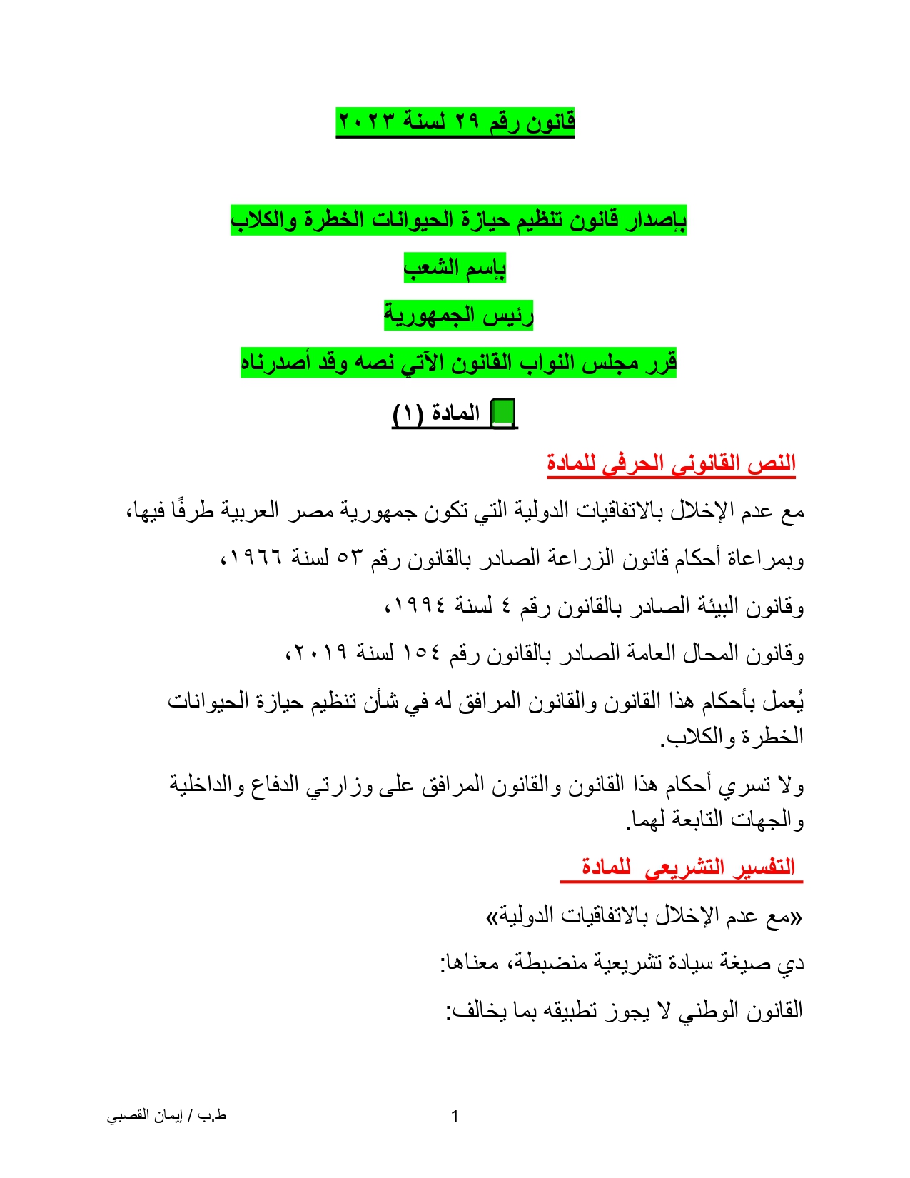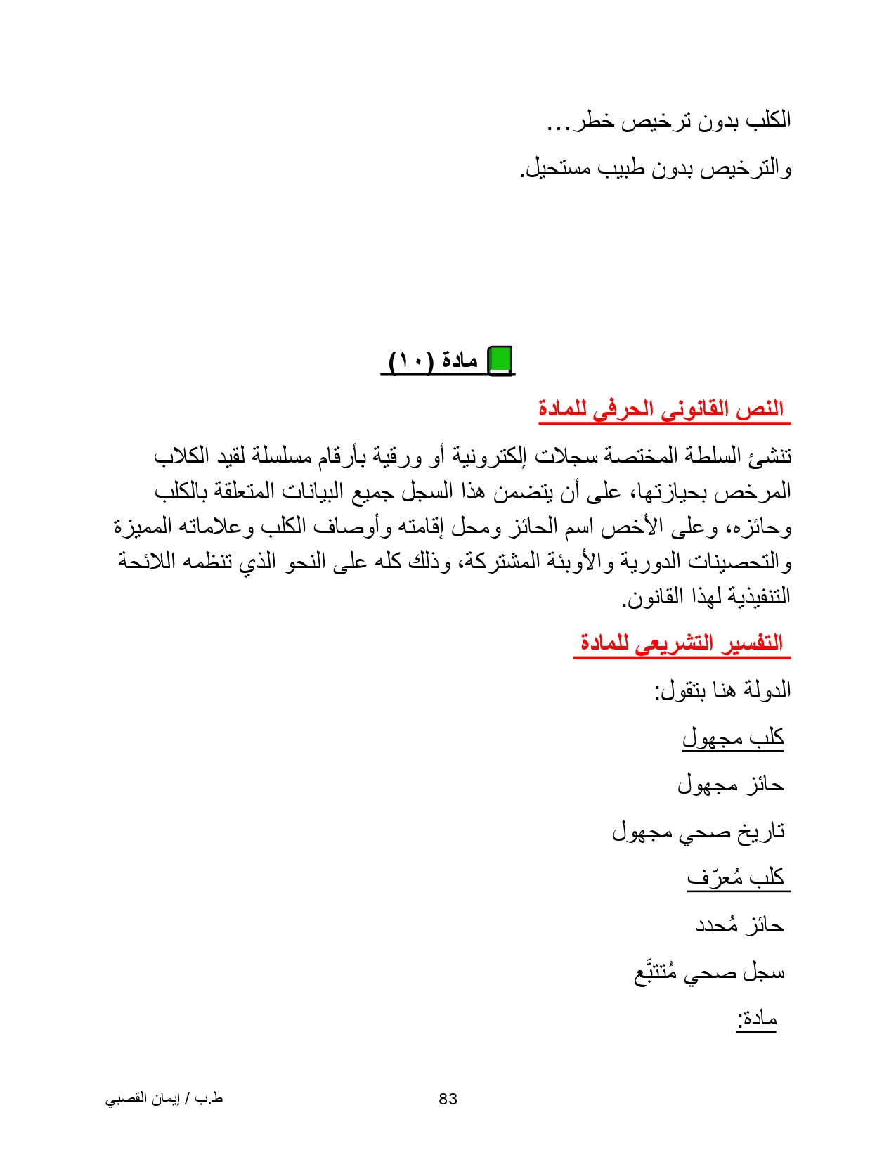 Law Of Regulating The Possession of Dangerous Animals & Dogs